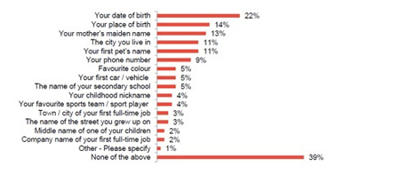 52 % des européens s’alarment du manque d’originalité des méthodes d’authentification utilisées par les entreprises et 61% admettent partager des éléments de réponses à leurs questions de sécurité sur leurs profils sur les médias sociaux.