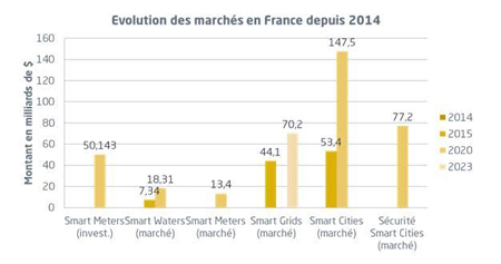 Le cabinet de conseil Markets & Market estime ainsi que la croissance annuelle du marché de la smart city sera de 19,4 % d’ici 2020, pour un total de 758 milliards de dollars.