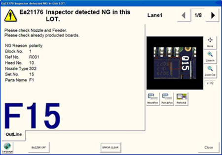 Parmi ces logiciels, QA Option de Yamaha est hébergé sur la ligne et compare les données d’inspection optique (AOI) en ligne post-placement à celles de la machine de dépose/sérigraphie ou de montage (Image 1) pour identifier toute erreur de placement de composant ou défaut de pâte à braser à l’échelle d’une simple buse de placement ou d’une ouverture de pochoir. Les notifications affichées à l’écran (Image 2) ou envoyées sur l’appareil du responsable grâce au logiciel d’appréciation à distance Mobile Judgement de Yamaha permettent de prendre immédiatement des mesures correctives et donc d’améliorer le contrôle qualité ainsi que la productivité. Les informations recueillies peuvent aussi guider la maintenance préventive, désormais considérée comme un aspect important du smart manufacturing.