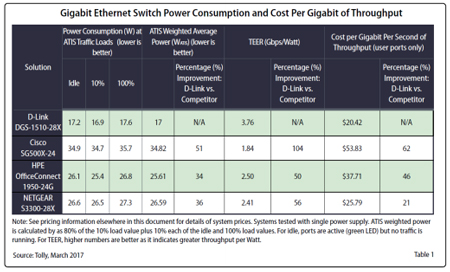 Les tests ont été effectués sur des commutateurs dotés de 24 ports Gigabit Ethernet et quatre ports 10GbE. L’étude a démontré que le commutateur DGS-1510-28X de D-Link a surpassé les concurrents en termes de performance et de consommation d’énergie.