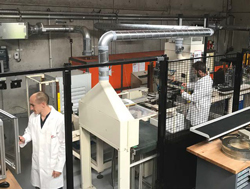 La plateforme installée au Centre de ressources en mécatronique du Cetim à Annecy (Haute-Savoie) regroupe l’ensemble des machines nécessaires pour fabriquer un capteur autonome communicant : une machine de sérigraphie et un four de frittage à 900 °C pour « imprimer » des circuits multicouches sur des supports en céramique, un laser d’ajustage automatique qui permet de contrôler l’impédance des circuits et de la corriger si nécessaire, une unité de vernissage UV, une ligne de collage automatique chargée d’associer la partie électronique contenant l’élément sensible sur le corps d’épreuve (le processus de collage en automatique fait l’objet d’un brevet du Cetim) et un four de polymérisation.
