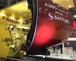 - Le robot le plus puissant au monde ! Ce dernier de la société FANUC, capable de soulever jusqu’à 2,3 tonnes, sera présenté avec en bout de bras une véritable nacelle A380 prêtée généreusement par SAFRAN.