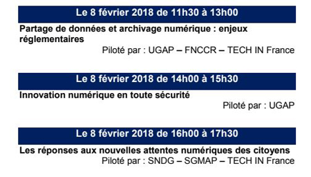 Côté exposants : archivage numérique, bases de données, bureautique, cloud computing, conseil, e- administration, gestion documentaire, logiciels de gestion, hébergement de données, infrastructure et réseaux, maintenance et infogérance, sécurité des données, services multimédias, solutions d’informatique publique, systèmes d’impression, systèmes d’information administratifs, systèmes d’information décisionnels, etc...