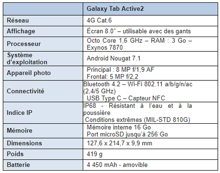 Enfin, la Galaxy Tab Active2 embarque la technologie NFC, pour badger à l’entrée d’un site ou activer certains processus métiers.