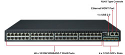 48 ports RJ45 10/100/1000BASE-T Gigabit Ethernet RJ45
