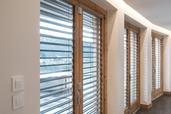 Les résidents peuvent aussi réguler la température et la luminosité naturelle intérieure grâce à la commande automatique des rideaux et des stores. Même si la maison est vide, les volets peuvent être baissés le soir et les stores peuvent se fermer automatiquement. Ainsi le chalet est à température ambiante lorsque la famille rentre des pistes.