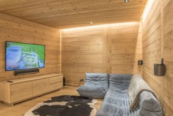 Niko Home Control permet de contrôler l’éclairage de la salle de cinéma depuis un smartphone, selon l’ambiance souhaitée et également de gérer l’éclairage automatique de la « ski room » au retour des pistes.