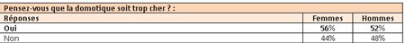 Le coût de l’équipement en appareils domotiques semble être un frein évident pour la plupart des consommateurs. Ainsi, plus de 56% des femmes et 52% des hommes interrogés déclarent trouver les prix en domotique trop élevés.