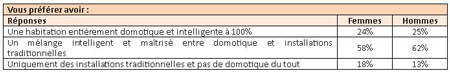 Les Français ne semblent pas prêts à passer au 100% domotique. En effet, 60% des personnes interrogées veulent bénéficier d’un mélange intelligent et maîtrisé entre des appareils domotiques et des installations traditionnelles. Ils ne sont que 24% à envisager d’avoir une habitation 100% domotique et intelligente.