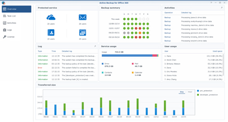 Un tableau de bord redessiné pour une gestion centralisée offre aux administrateurs la transparence au niveau de la protection en temps réel et de l’historique des messages, des contacts, des calendriers et des services de disque, de la consommation de l’espace de stockage par chaque service et des utilisateurs principaux, ainsi que la transmission de l’historique des données à partir d’une interface unique.