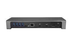 La station d’accueil Thunderbolt™ 3 permet de connecter un ordinateur portable à deux écrans Ultra HD 4K (4K x 2K), à l’aide d’un port DisplayPort et d’un port USB-C™ Thunderbolt™ 3 (câble USB-C vers DP inclus), ou de configurer un seul écran. De plus, la station est dotée de six ports USB 3.0 (y compris un port de charge rapide et un port USB-C), d’un port Gigabit Ethernet et d’un port audio/microphone permettant de connecter différents périphériques. Grâce à ses nombreuses possibilités, l’utilisateur pourra donc transformer son ordinateur en véritable poste de travail tout en alimentant et rechargeant ce dernier.