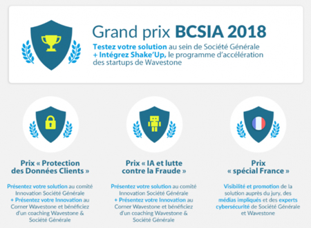 Startups et PME innovantes dans le domaine de la cybersécurité ont jusqu’au 20 mai pour soumettre leurs produits et services et concourir à l’une des quatre catégories : Grand Prix BCSIA 2018 ; Protection des données clients ; IA et lutte contre la fraude, et Spécial France. Les lauréats seront annoncés le 4 juillet prochain.