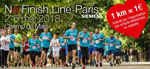 L’inscription est unique : les participants sont invités à venir et revenir autant de fois que désiré pendant la durée de la course. Pour chaque kilomètre parcouru, un euro est reversé par les partenaires de l’événement à des projets en faveur de l’enfance. Cette année encore, la No Finish Line Paris by Siemens s’associe au Samusocial de Paris et à La Chaîne de l’Espoir.