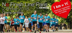 Fort du succès de ses trois précédentes éditions, la No Finish Line Paris by Siemens, événement solidaire, familial et sportif, revient pour la 4ème année consécutive sur le Champ-de-Mars, avec la tour Eiffel en toile de fond. En 2017, 127 550 € de dons ont été levés pour l’enfance par les 8 000 participants : un record ! En 2018, il faudra faire encore mieux et atteindre les 200 000 km... Un défi à relever tous ensemble ! Les inscriptions sont accessibles sur le site officiel ICI.