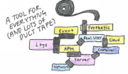 Avec les outils d’APM de deuxième génération, tout est question d’application... et c’est un bon début ! Le problème, c’est que la performance de votre application ne dépend pas que de la qualité de son code. Avec le temps, vous avez sans doute dû ajouter un grand nombre d’outils de monitoring supplémentaires pour vos serveurs, votre réseau, vos fichiers de log, l’expérience de vos utilisateurs, etc. Au fil du temps, les fournisseurs de solutions de deuxième génération se sont empressés de développer de nouveaux modules pour compléter le puzzle. Mais l’approche reste fragmentaire, et non holistique. Résultat ? Des coûts supplémentaires de logiciel, de maintenance, de ressources humaines, et de formations. Et toujours pas de réponses.