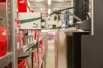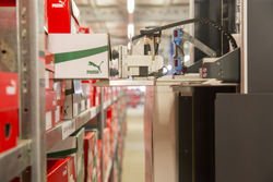 Prendre des décisions ? Lorsque TORU reçoit l’ordre de prélever une certaine paire de chaussures, il obtient tout d’abord l’adresse dans l’entrepôt et un code à barres. Ainsi, le robot connaît l’emplacement de la cible et peut naviguer directement jusqu’à l’adresse. La colonne de levage située à l’avant du véhicule effectue ensuite une rotation de 90° vers le rayonnage, un préhenseur se déplace jusqu’à l’emplacement spécifié et c’est alors que TORU commence à prendre des décisions par lui-même. À l’aide d’images de caméra en trois dimensions, le robot produit tout d’abord une image de la situation actuelle. « Le rayonnage contient-il ne serait-ce qu’une boîte à chaussures ? Le code à barres approprié est-il présent ? Suis-je en mesure de saisir le carton ? Il a peut-être été décalé de quelques centimètres et risque de se coincer lors de l’extraction ? » Le porte-parole de Magazino, Florin Wahl, utilise ces questions pour décrire les tâches principales de l’analyse visuelle. Les réponses correspondantes font du système de Munich un système unique. Si un ordre de prélèvement concerne un carton qui a été placé un peu de travers sur le rayonnage par un employé, le robot essaie d’adapter son processus de préhension aux circonstances. Si TORU détermine que la préhension n’est toujours pas possible, la tâche est renvoyée au système et un employé de l’entrepôt devra exécuter manuellement cet ordre de prélèvement.
