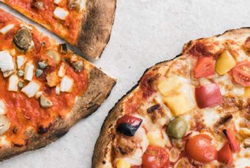 La pâte, fraîche, est faite localement et cuite sur pierre. Les ingrédients, de très grande qualité, viennent d’Italie et de France : de la farine de blé des MOULINS FAMILIAUX, des légumes bio, des fromages AOP, du jambon clean label BBC, et des poissons issus de la pêche durable.