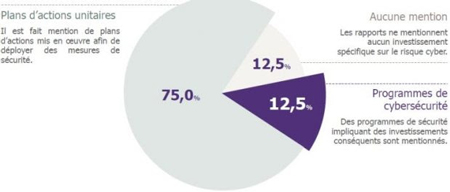 Preuve que les entreprises sont de plus en plus mobilisées autour de la cybersécurité, 100% des rapports d’activité des entreprises du CAC 40 font mention des enjeux de sécurité SI, alors qu’en 2010, elles n’étaient que 73% à y faire mention.