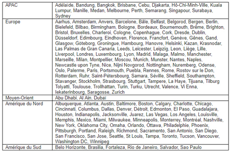 Les villes couvertes par l’outil HERE Traffic Dashboard sont les suivantes :