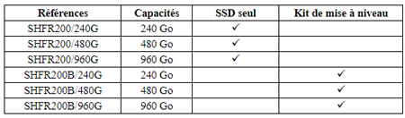 Capacités : 240 Go, 480 Go, 960 Go