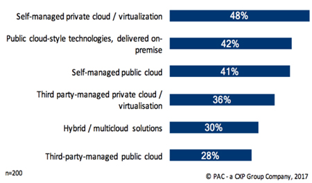 Pour 82% des DSI européens, la transformation de l’infrastructure est encore un travail en cours selon l’étude* menée en partenariat par OUTSCALE avec le bureau d’études PAC–CXP Group sur la transformation numérique des infrastructures IT. Bien que les entreprises françaises soient les plus engagées sur la transformation numérique en Europe, l’étude révèle que les DSI, à 42%, (cf figure) sont de plus en plus intéressés par des solutions on-premise (sur site) pour leur simplicité d’utilisation, leur flexibilité et leur sécurité.