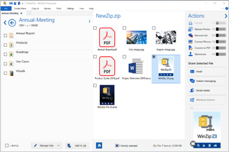 WinZip® 23 Enterprise exploite la puissance de WinZip 23 Pro, la dernière version du logiciel de compression, de chiffrement et de partage des fichiers le plus puissant au monde. WinZip® 23 Pro augmente la productivité grâce à des mises à jour rapides et une expérience utilisateur améliorée.
