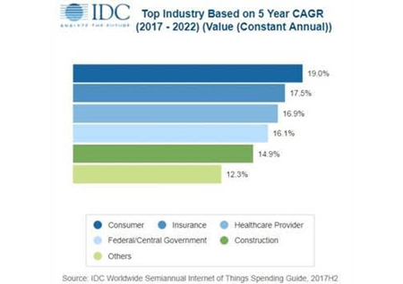 Ce potentiel d’usages explique la croissance annuelle soutenue des dépenses de l’Internet des objets (IoT) : IDC estime que celle-ci sera de 13,6% entre 2017 et 2022. A cette échéance, le marché pèsera 1200 milliards de dollars et touchera l’ensemble des industries.