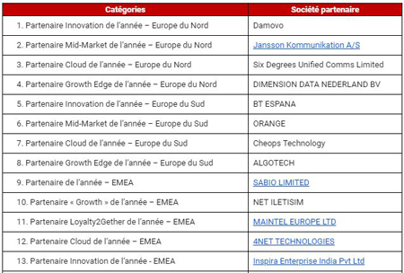Une trentaine de prix ont ainsi été décernés aux partenaires d’Avaya pour leurs idées novatrices destinées à révolutionner la façon dont les entreprises construisent leurs expériences client et collaborateur.