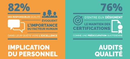 La certification qualité (76%), s’impose comme la deuxième préoccupation des entreprises. Les directeurs qualité réalisent des audits internes pour poursuivre l’amélioration des services et des produits, tout en demeurant vigilants vis-à-vis des normes internationales auxquelles ils sont soumis.