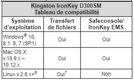 Fonctionnalités et caractéristiques de la clé Kingston IronKey D300 sérialisée gérée :