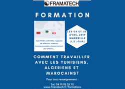 FRAMATECH organise une formation interculturelle "COMMENT TRAVAILLER AVEC LES TUNISIENS, ALGERIENS, MAROCAINS ? ", les 04 et 05 avril 2019 (1,5 jour) à Marseille et nous avons pensé que vos lecteurs pourraient être intéressés.