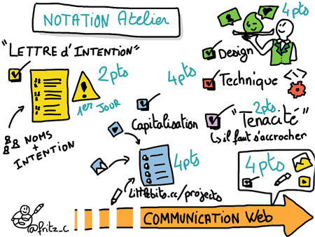 Utilisant le matériel mis à leur disposition (LittleBits, carton plume, imprimantes 3D…), et travaillant sur le sujet de leur choix (par itérations), ils sont ensuite notés sur leur lettre d’intention (quel IOT choisi), la capitalisation (documentation du projet), le design technique mais aussi leur ténacité sur ce cours en mode Hackathon Au travers de leurs comportements et réalisations, les encadrants peuvent ainsi identifier dès la fin de la séance, les affinités ou prédispositions de chacun pour l’un des 5 axes. Cette initiation de Design d’expérience - qui peut être prolongée par le Mastère Interactivité et UX (user expérience) Design, accessible en 4ème année par tous les axes métiers de l’IIM et ouvert aux inscriptions externes – leur sera utile quelque soit la spécialisation qu’ils choisiront