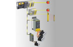 L’automate programmable de sécurité Parker est intégré comme module d’extension dans le réseau EtherCAT. En tant que maître FsoE, il peut adresser tous les composants de sécurité via le réseau, tels que les entrées et sorties de sécurité, ainsi que les servocommandes PSD avec technologie de sécurité intégrée. Des composants externes peuvent être connectés directement aux modules d’entrée/sortie sécurisés, tels que des barrières immatérielles ou boutons d’arrêt d’urgence. L’API coordonne toutes les fonctions de sécurité à partir d’un point central, facilitant ainsi la programmation du système.