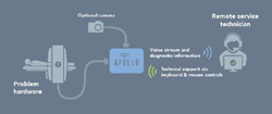 Un boitier mobile intégrant un KVM et une caméra, un tunnel de communication dédié, un technicien… Apollo permet aux usines ou aux gros utilisateurs d’équipements stratégiques de bénéficier d’ un support distant immédiat, y compris pour les machines non reliées à Internet.