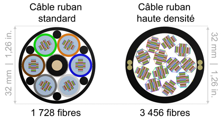 Suite à la distribution et la densification des points de connexion dans les réseaux d’accès et les centres de données, les fibres optiques sont davantage déployées au sein d’un plus grand nombre de voies d’accès. Cependant, l’espace physique dans lequel les câbles optiques sont déployés est fixe ou rapidement saturé. C’est pour cette raison que l’industrie de la fibre optique a mis au point ces deux solutions très efficaces sur le plan spatial permettant de relever ces nouveaux défis : des micro-câbles haute densité et des câbles ruban à haute-densité permettant une installation avec épissure rapide et le plus haut nombre de fibre dans un seul câble. L’espace est un enjeu majeur pour assurer un service de qualité et une connectivité adéquate et ainsi répondre aux attentes et aux besoins des utilisateurs finaux.