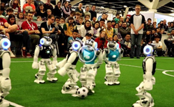 Après avoir conquis l’industrie, les robots se font maintenant aussi footballeurs. Les petits robots footballeurs maîtrisent parfaitement le ballon rond, comme l’a démontré cette année l’équipe B-Human de Brême (Allemagne) lors de la RoboCup, une compétition internationale de football robotique qui s’est tenue à Sydney. Le champion d’Allemagne a remporté le titre en catégorie plateforme standard en s’imposant face au champion du monde en titre, l’équipe de Leipzig (Allemagne).