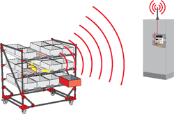 Le flux d’informations entre les systèmes mobiles eKanban est transmis par communication radio. Toutefois cette technologie convient également très bien aux systèmes eKanban fixes : l’absence de câble permet une meilleure flexibilité en cas de déplacement des rayonnages ; de plus, il n’y a pas de frais d’installations, ni de maintenance. Le principe eKanban se prête particulièrement bien à la communication par radio car un très grand nombre de rayonnages ou de postes de travail peut être surveillé. Initialement, de telles applications étaient réalisées avec des interrupteurs et des capteurs radio conventionnels, par liaison radio point à point vers le récepteur distant. Puis steute Technologies a développé la technologie sWave.NET qui a permis l’intégration en réseau de plusieurs centaines de capteurs et/ou fins de course dans un même environnement.