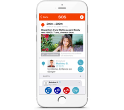 Lorsque l’évènement nécessite une diffusion plus large comme la disparition d’un enfant, il suffit à l’utilisateur d’actionner le bouton « relayer » afin d’amplifier sa diffusion auprès de la communauté.