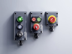 La nouvelle série est disponible en trois tailles de boîtier pour un, deux ou trois dispositifs de commande. Lors de l’assemblage, l’utilisateur peut choisir entre différents dispositifs de commande, indicateurs lumineux et interrupteurs à clé, y compris des boutons d’arrêt d’urgence et des boutons-poussoirs champignon. Tous les modèles conviennent au montage, par ex. sur l’habitacle des machines ou sur les murs et panneaux également et surtout dans les environnements défavorables impliquant une usure importante. Ils répondent à la classe de protection IP 66 et ont été conçus dès le départ pour des applications "Extremes".